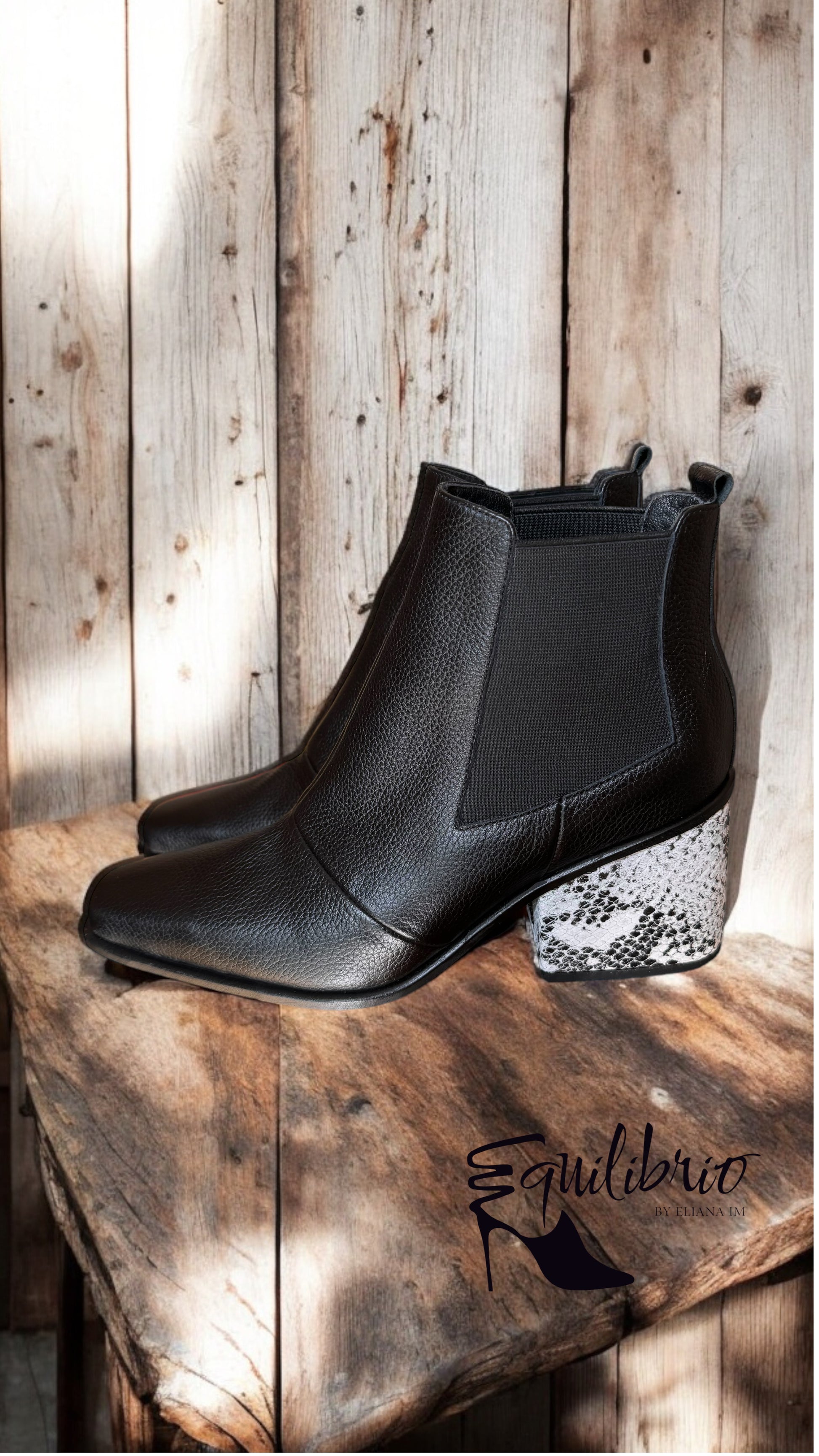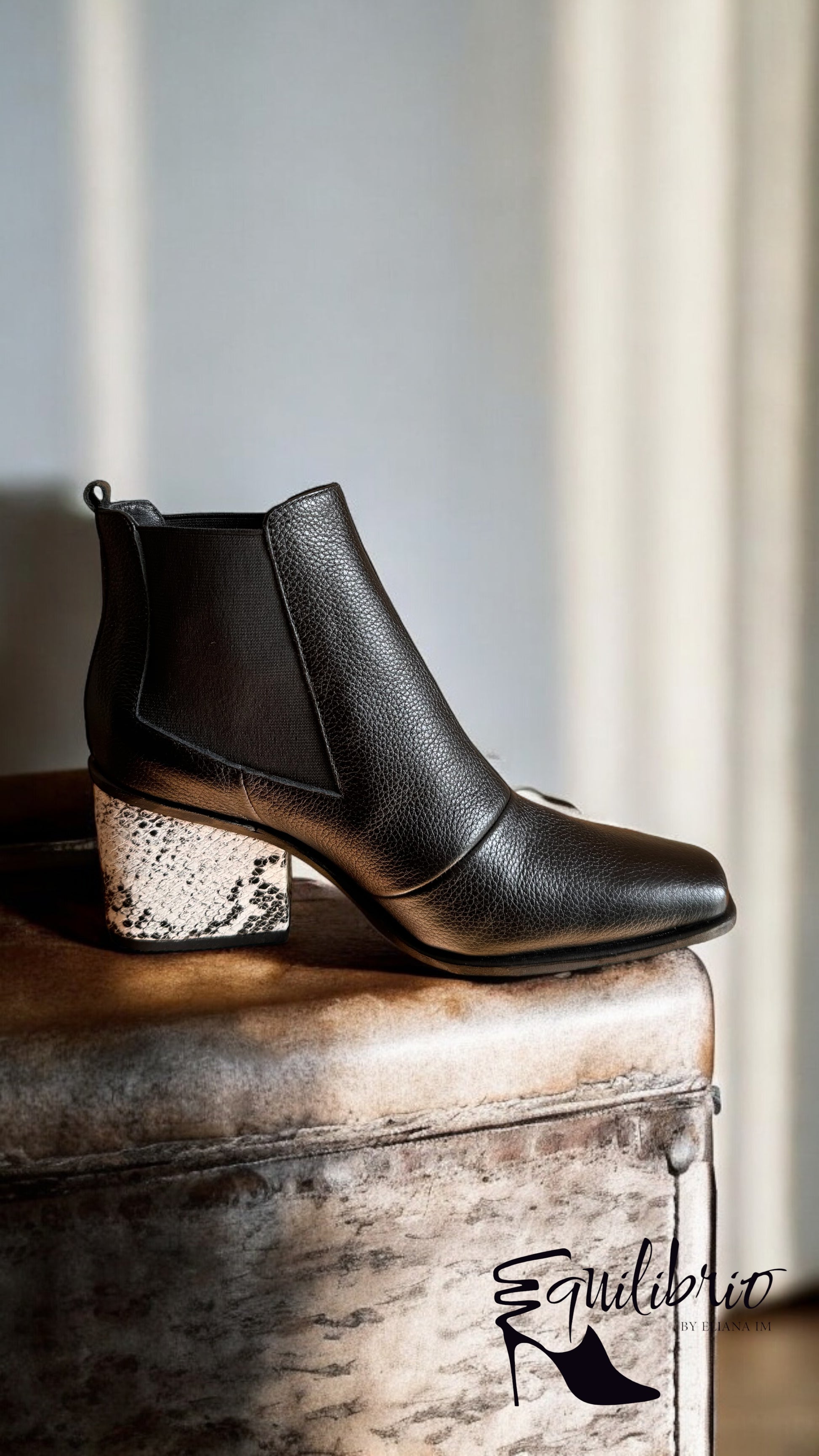 Nuestros Botines Ruby con tacón de pitón están confeccionados a mano con cuero vacuno de alta calidad. Su diseño único y elegante te brindará comodidad y estilo al mismo tiempo. Disfruta de la durabilidad y resistencia que solo el cuero vacuno puede ofrecer, mientras te destacas con un toque de sofisticación con su estampado de pitón.