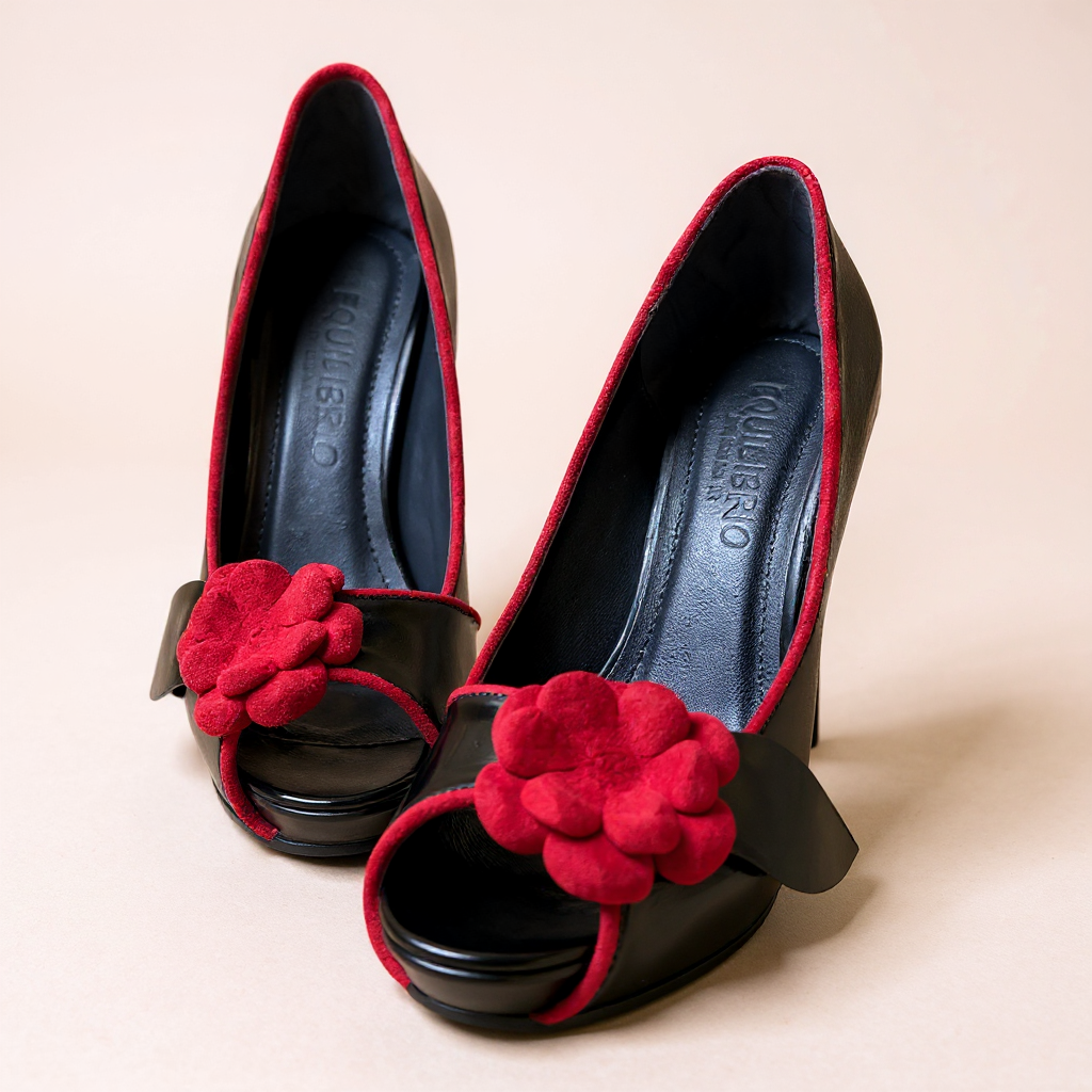 Nuestros elegantes stilettos de cuero negro hechos a mano, estilo boquita de pescado y una rosa roja en la parte superior. Elevan su belleza, comodidad y estilo al máximo. Con un diseño exclusivo, estos zapatos son perfectos para cualquier ocasión.