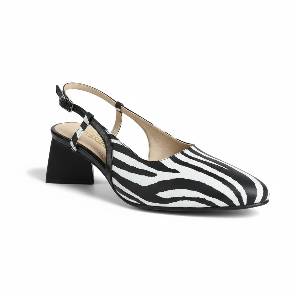 Slingbacks Zebra están hechos en cuero vacuno, ofreciendo un estilo elegante y cómodo. Con un tacón de 5cm, te brindarán la altura perfecta para cualquier ocasión. Su diseño destalonado también te proporcionará un ajuste cómodo.